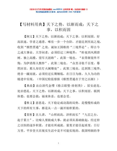 / 【写材料用典】天下之势,以渐而成;天下之事,以积而固