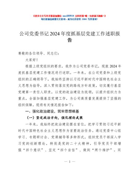 / 公司党委书记2024年度抓基层党建工作述职报告