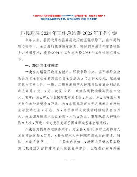 / 县民政局2024年工作总结暨2025年工作计划