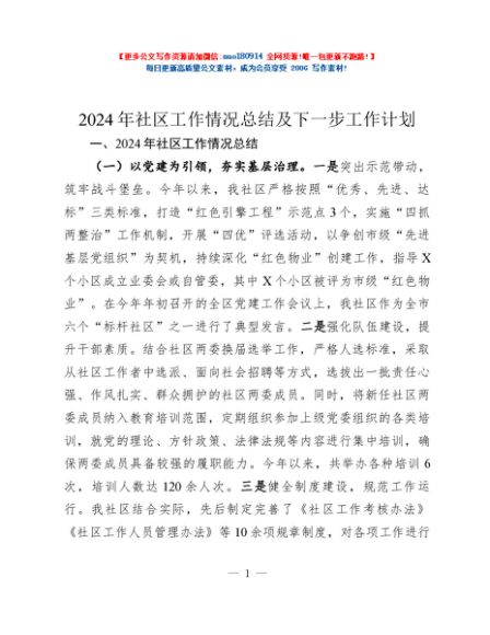 / 2024年社区工作情况总结及下一步工作计划