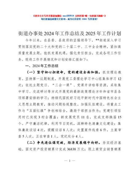 / 街道办事处2024年工作总结及2025年工作计划