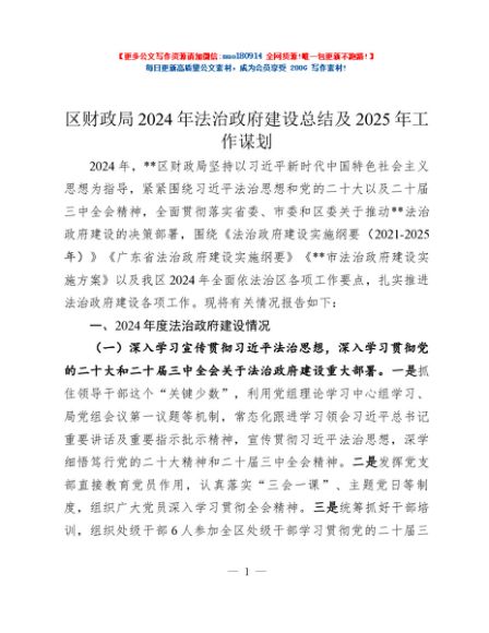 / 区财政局2024年法治政府建设总结及2025年工作谋划
