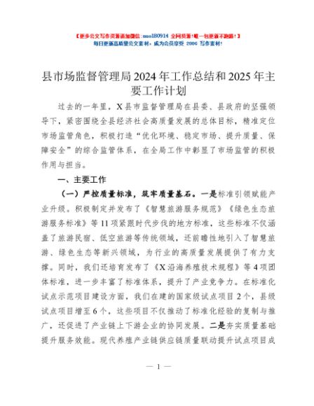 / 县市场监督管理局2024年工作总结和2025年主要工作计划