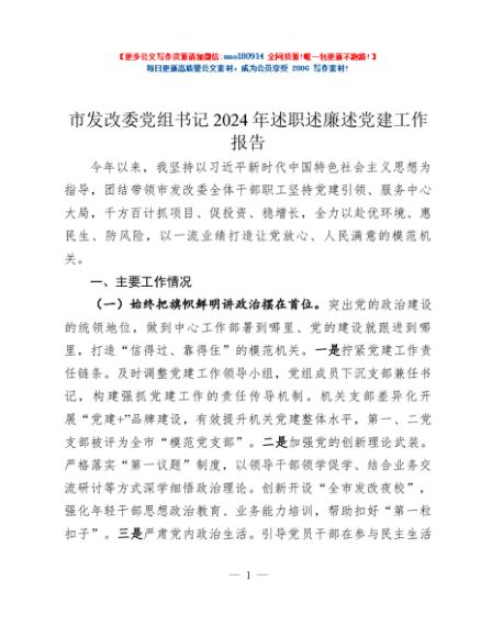 / 市发改委党组书记2024年述职述廉述党建工作报告