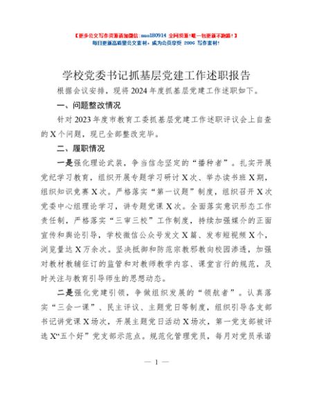 / 学校党委书记抓基层党建工作述职报告