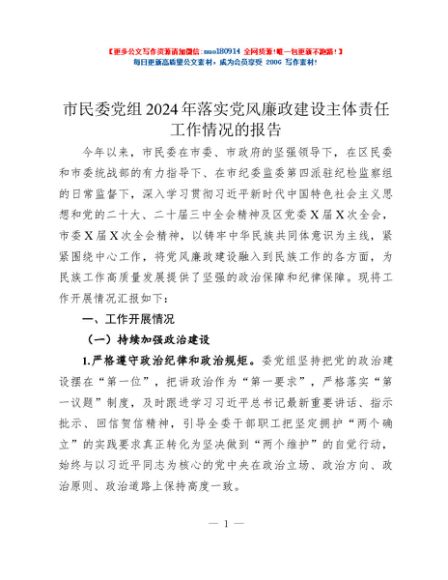/ 市民委党组2024年落实党风廉政建设主体责任工作情况的报告