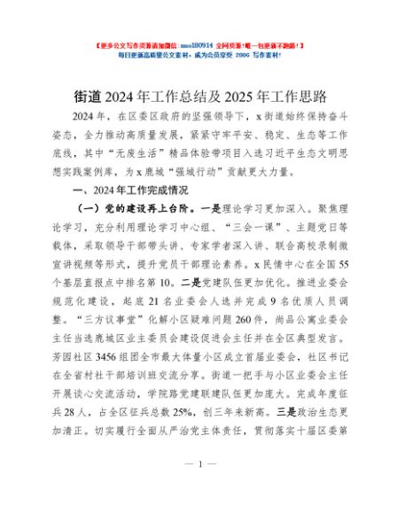 / 街道2024年工作总结及2025年工作思路