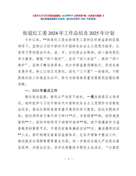 / 街道纪工委2024年工作总结及2025年计划