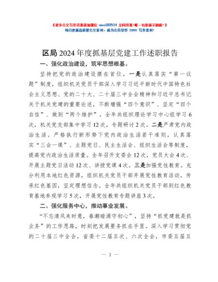 / 区局2024年度抓基层党建工作述职报告