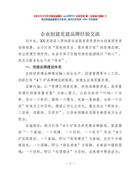 / 企业创建党建品牌经验交流