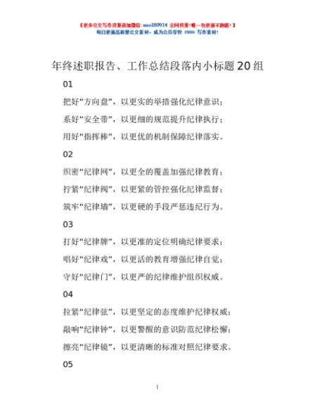 / 年终述职报告、工作总结段落内小标题20组