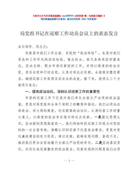 / 局党组书记在巡察工作动员会议上的表态发言