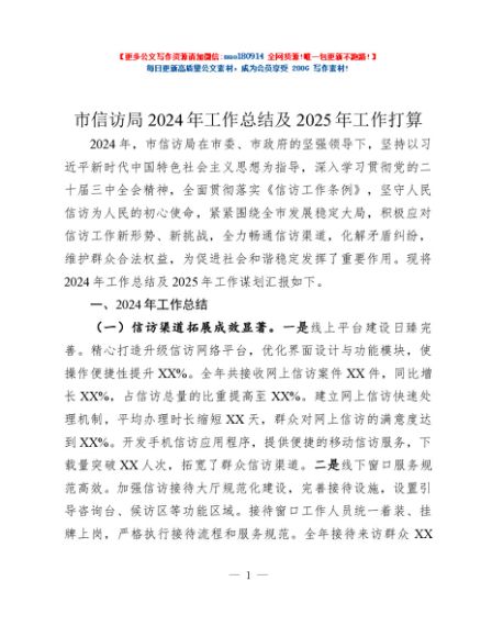 / 市信访局2024年工作总结及2025年工作打算