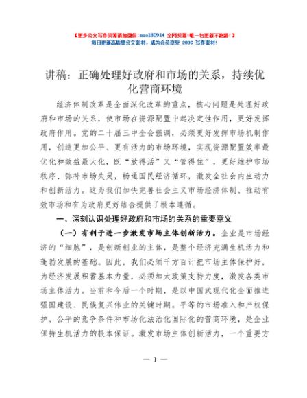 讲稿:正确处理好政府和市场的关系,持续优化营商环境
