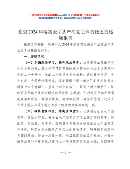 / 党委2024年落实全面从严治党主体责任述责述廉报告