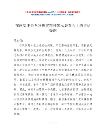 / 在落实中央八项规定精神警示教育会上的讲话提纲