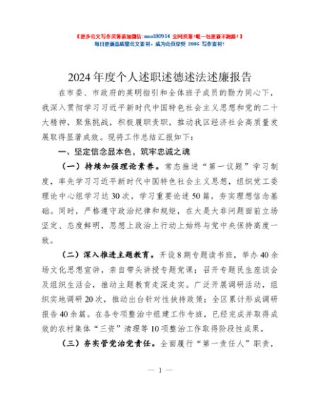 / 2024年度个人述职述德述法述廉报告