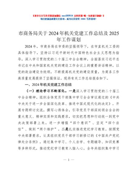 / 市商务局关于2024年机关党建工作总结及2025年工作谋划