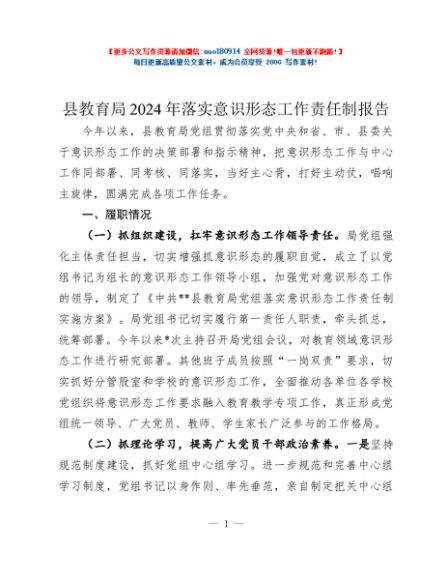 / 县教育局2024年落实意识形态工作责任制报告