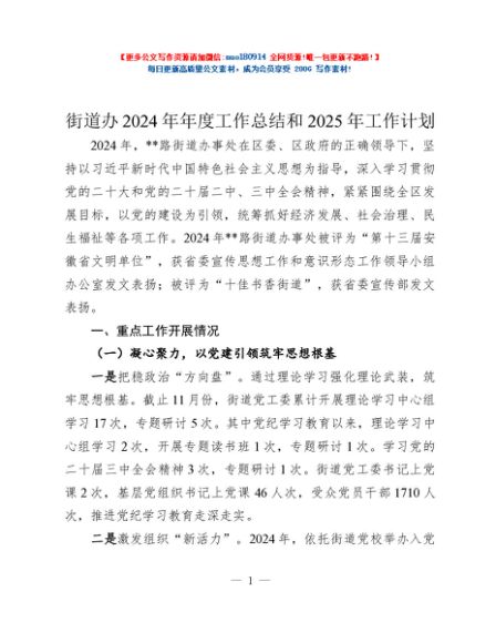 / 街道办2024年年度工作总结和2025年工作计划