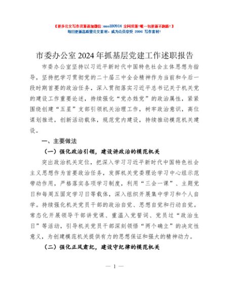 / 市委办公室2024年抓基层党建工作述职报告