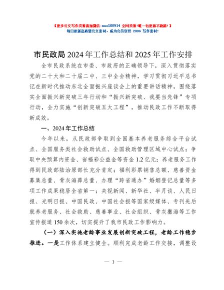 / 市民政局2024年工作总结和2025年工作安排