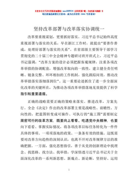/ 坚持改革部署与改革落实协调统一