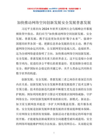 / 加快推动网络空间创新发展安全发展普惠发展
