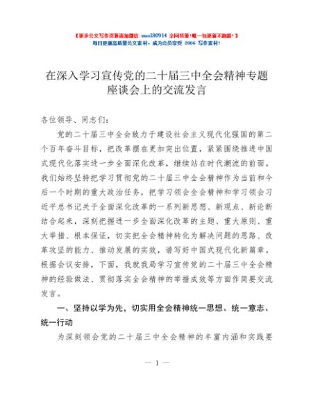 / 在深入学习宣传党的二十届三中全会精神专题座谈会上的交流发言
