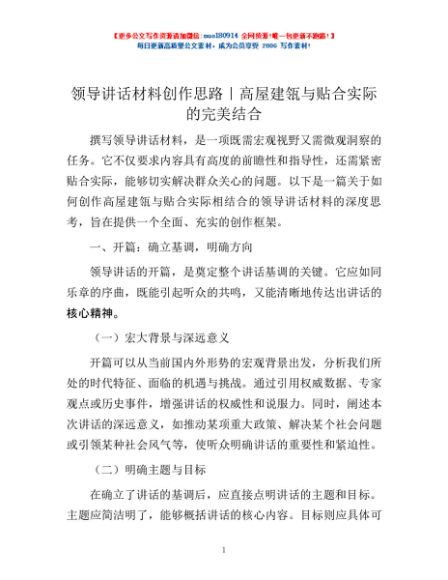 / 领导讲话材料创作思路|高屋建瓴与贴合实际的完美结合