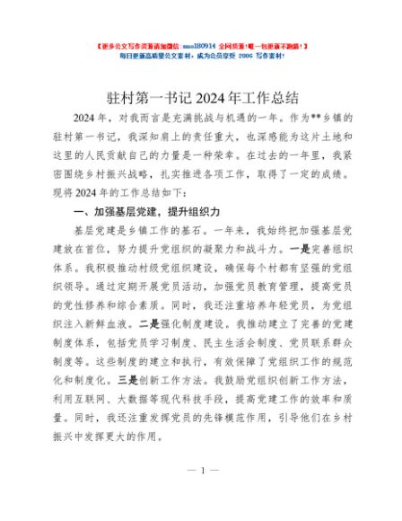 / 驻村第一书记2024年工作总结