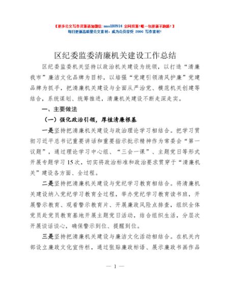/ 区纪委监委清廉机关建设工作总结