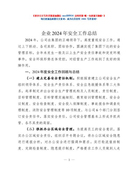 / 企业2024年安全工作总结
