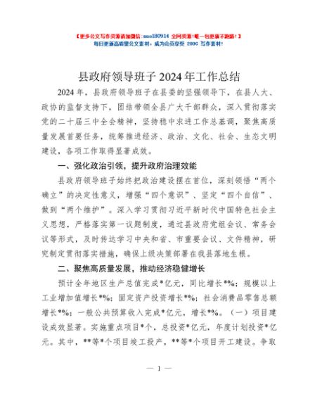 / 县政府领导班子2024年工作总结
