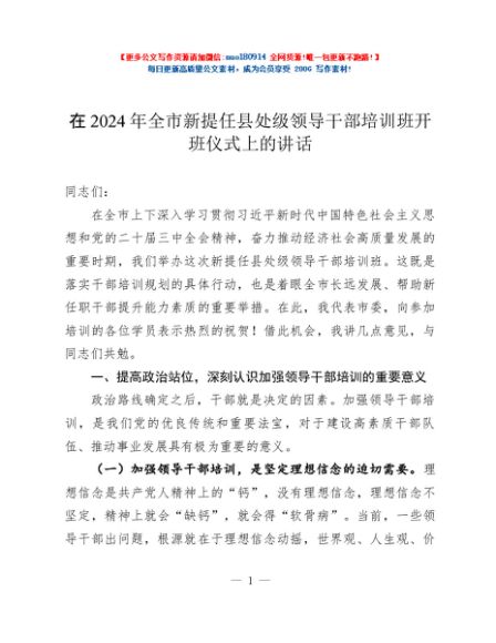 / 在2024年全市新提任县处级领导干部培训班开班仪式上的讲话