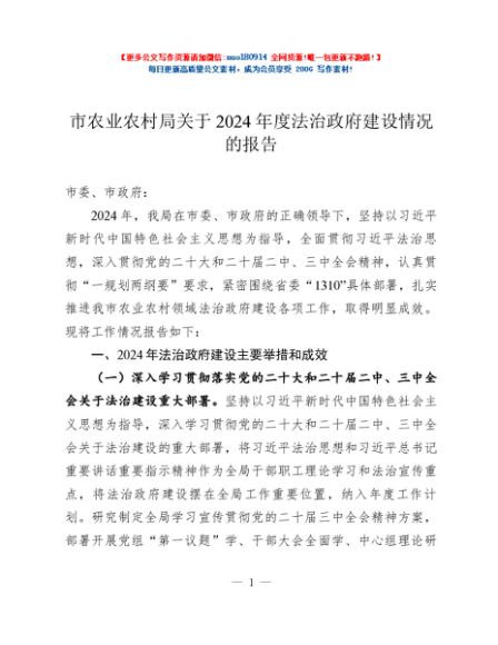 / 市农业农村局关于2024年度法治政府建设情况的报告