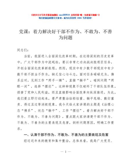 / 党课:着力解决好干部不作为、不敢为、不善为问题