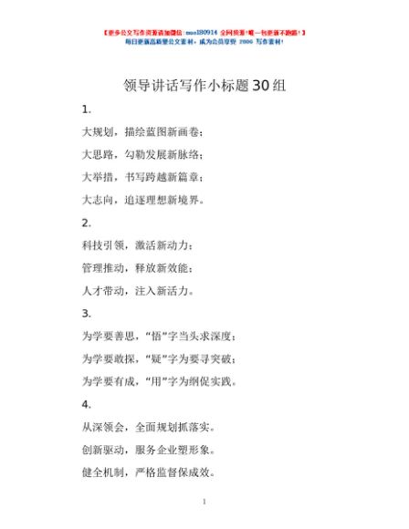 / 领导讲话写作小标题30组