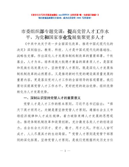市委组织部专题党课:提高党管人才工作水平,为党和国家事业发展集聚更多人才