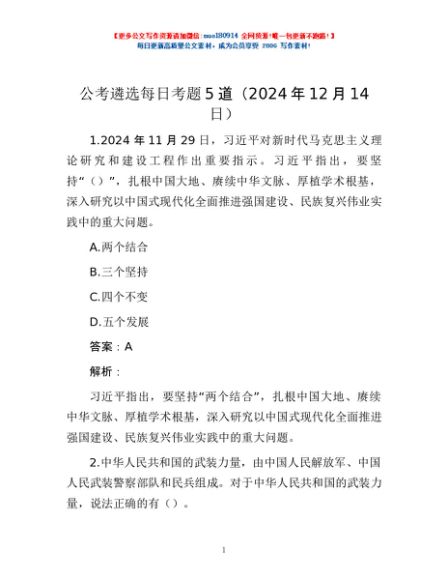 / 公考遴选每日考题5道(2024年12月14日)