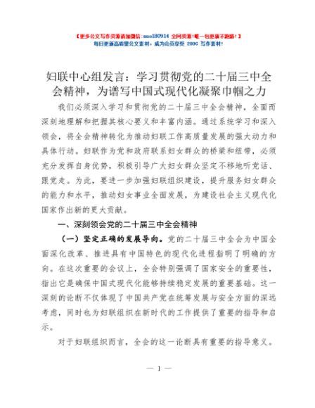 / 妇联中心组发言:学习贯彻党的二十届三中全会精神,为谱写中国式现代化凝聚巾帼之力