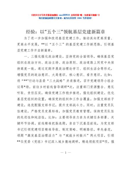 经验:以“五个三”领航基层党建新篇章