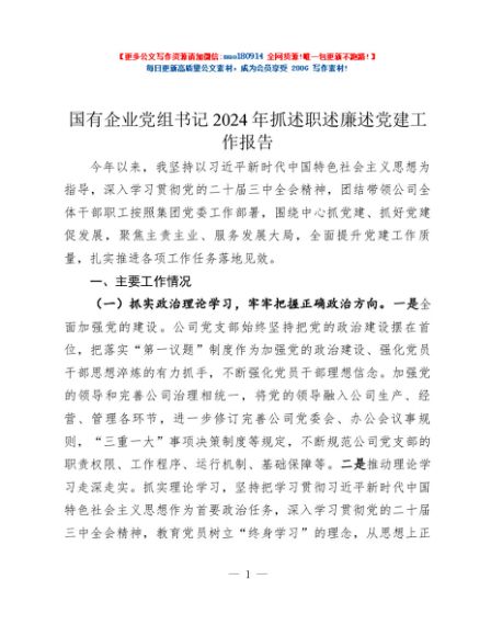 / 国有企业党组书记2024年抓述职述廉述党建工作报告