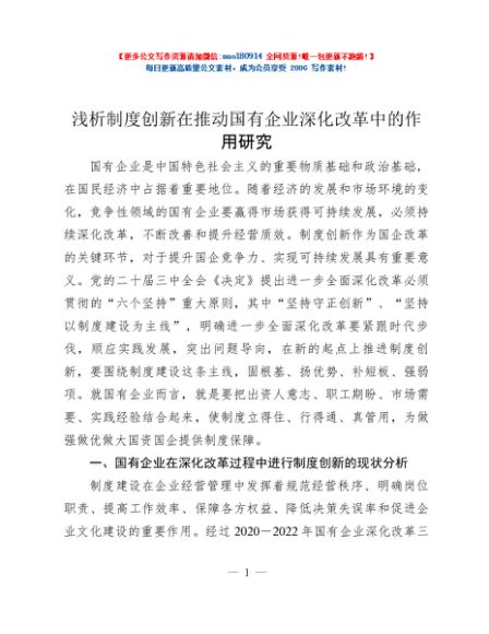 / 浅析制度创新在推动国有企业深化改革中的作用研究