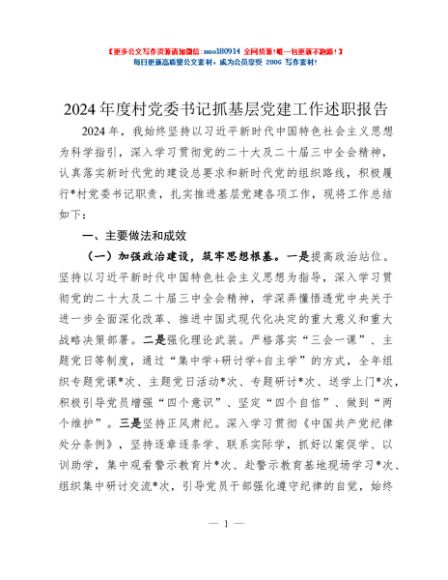 / 2024年度村党委书记抓基层党建工作述职报告