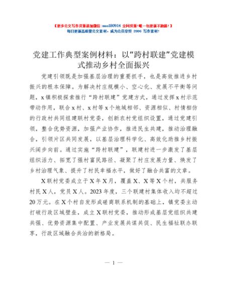 / 党建工作典型案例材料:以“跨村联建”党建模式推动乡村全面振兴