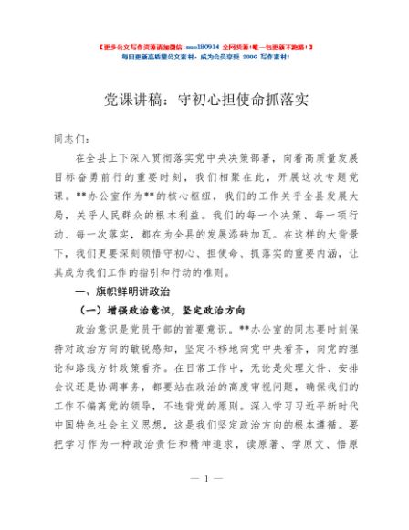 / 党课讲稿:守初心 担使命 抓落实