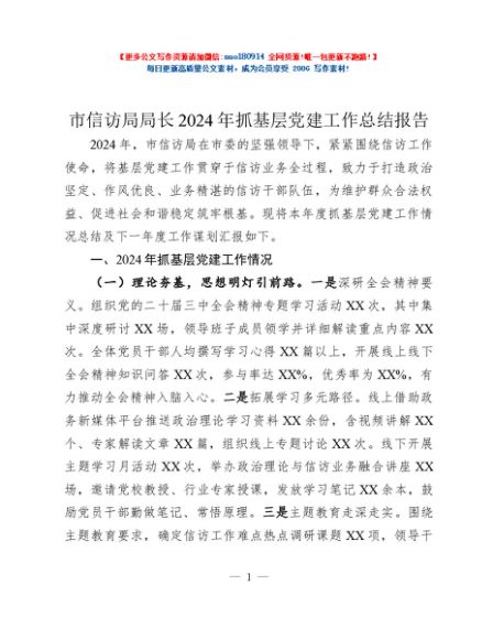 / 市信访局局长2024年抓基层党建工作总结报告