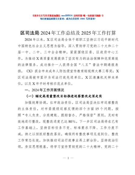 / 区司法局2024年工作总结及2025年工作打算