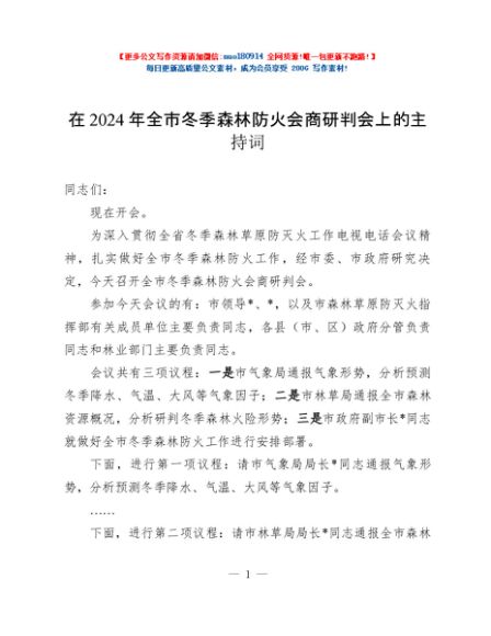 / 在2024年全市冬季森林防火会商研判会上的主持词